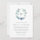 Vår Vild Azure-bröllopsinbjudan i monogram innehåller ditt första monogram överst, omgivet av en ovallig krans av vintern vattenfärgsblad i isigens blå nyans. En modern och elegant tar sig an den botaniska trenden för vinterbröllop i blått och vitt chic.