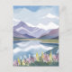 Mountain Sjö | Blommigt Vattenfärg liggande Vykort