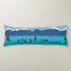 Bergsområden med tak vid snö och blå sjö med gräs träd i förgrunden