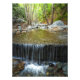 A clear mountain stream cascades gently over rocks beneath a canopy of green forest in this tranquil nature photograph. The peaceful sound and motion of flowing water are captured in this landscape image, perfect for bringing calm natural scenery into your home or office.
