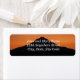 Returetiketter för dina kuvert som innehåller fotobilden av ett dramatiskt solnedfall med orange och ett svart silhuett av Montera Huva. Anpassa etiketterna genom att redigera text och ersätta med egna namn och adress.