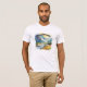 Camping or hiking themed T-Shirt with inspirational slogan "Leave the roads, take the trails", which can be edited to your own words. Printed with an image of a serene watercolor mountain vista. See more in this collection at Camp_and_Cottage on Zazzle.