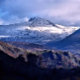 En fotografisk design av snö omfattade toppar i bergsregioner i Wales.
