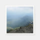 En åsikt från toppen av berget Snowdon, det högsta berget i Wales. Med avvikande åsikter om backe, sten och fåglar i förgrunden.