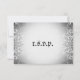 Middagskort för OSA Bride & Groom Skeleton Wedding. Grått och vit bakgrund omgiven av ironwork tittar blommor gör denna osa rent underbart till konstens biet. En söt skelettbrud och stam komplett med tophat, tarm, slöja och hjärta på framsidan. Sofistikerade och unika gäster kommer att kunna tala om för er om de kommer till bröllop eller inte.
