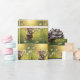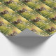 En liten mus som bär en brun apron står i fält på daisy som håller en daisy i sitt lilla tass