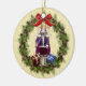 Mouse kung nutcracker doll i utandningsomgången Buon Natale, italiensk julprydnad. Den här vackra dubblan vid sidan av helgdag keramiska prydnadsföremål har en mus kung i centrum av en helgdag-andedräkt med gräs-koner och bär! Baksidan har också en underbar andedräkt med ord "Buon Natale" - God jul på italienska och året! Ett underbart tillägg till din prydnadssamling, helgdag-dekoration och en underbar gåva till familj, vänner och någon som kärlek muskler!