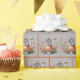 Cute grått-mus på ett svamprum i en blomsterträdgård och grått-bakgrund