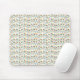 Mouse pad with a pattern of diverse smiley faces in multiple colors, creating a playful and cheerful atmosphere. Below, a white mouse rests on it.