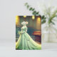 Den här eleganten är redot för hennes stora dag. Hon är klädd i en finare-grav och håller en bukett blommor.