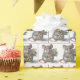 Cute grått-mus med bukett av vilda blommor på vit bakgrund
