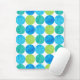 En sjudande färgad Mousepad med "Blue Måne abstrakt mönster i ljusblues och nybörjare grönt på vit bakgrund; från en handmålad papper kollagedesign av Judy Adamson.