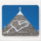 Mousepad med en närbild av stenen belägger med tegel tak av ett traditionellt trullihus i Alberobello, Puglia i italien.