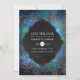 Vintage bröllop sparar det datum som innehåller en kalkbräda mot en ljus, mousserande dammbakgrund i koppar- och blå accenter.