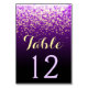 Mousserande ljus i bordsnumret himlar lila bröllop placerar ett kort med vit och blek gult gulaktigt ljus som gnistra på lila gradientbakgrund. Denna moderna bröllopsinbjudan för elegant och snyggt är en del av en samling eller ett arrangemang för bröllop och är en fullkomligt perfekt för anpassade under en sommar- eller vinternatt bröllop.