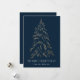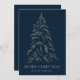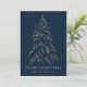 Modern helgdag- och elegant-kort med en snöfaux-folie från guld i gräs med en marin bakgrund (eller färg efter eget val). "God jul" visas i ett vitt, modernt serif-teckensnitt med namnet eller anpassningsbarna nedan. Helgdag som inte är fotot återgår till visning tre gyllene gräs träd med ditt anpassningsbar-meddelande nedan i vit text. Den här designen är perfekt till använda som ditt kort för familjejul eller helgdag för företag/företag.
