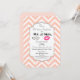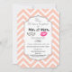 En inbjudan till bröllopsdag med en trendig design - glamourösa rosa kyssiga läppar och en manlig retro-utseende mustasch illustration. Med orden Mr. och Mrs. Bakgrunden är ett persikofärgat chevronmönster. En dekorativ ram överst med din festinformation inuti. Anpassa med din årsdagsfest detaljer.