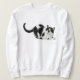 Den original- konstdesignen av en lycklig svartvit smokingkatt som namnges Moxie av märkes- Carolyn McFann av studion för två spinnakatter på en anpassadetröja för kattdjur, fläktar.