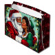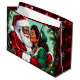 Cute old-fashioned Christmas gift bag sweet vintage African-American Mr and Mrs Santa Claus. Cute ai art that gives you that nostalgic Christmas vibe.