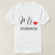 Custom Mr t-shirt design with modern stylish script and red heart accent can be personalized with the groom's last name. Makes a great wedding gift for the honeymoon!