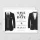 Låt alla få veta att ni två har bestämt er på ett datum för bröllop med det här moderna datortet som innehåller två svarta kostym. Anpassa genom att lägga till namn, datum och bröllop.
