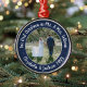 Fira en glatt första helgdag som gift par med ett foto av anpassningsbarna "Vår första jul som Mr. Och Mrs." runt metall ornament. All text på den här mallen är enkel att anpassa. (IMAGE & TEXT DESIGN TIPS: 1) Lägg till blanksteg i början eller slutet om du vill justera skrivläget. 2) Om du vill centrera fotot exakt så som du vill kan du placera det i kvadratisk form innan du laddar upp det till Zazzles webbplats.) Utformningen har en snyggt modern minimalistisk marin blå och vit gräns, handskriven kalligrafi av stil i namn och år och en bild till ditt val. Denna unika bröllop-keepsaké tillför en elegant till de nya Julafton-dekorationerna. Exempelbilden är av Tim Stagge (Källa: @tim_stagge on Unsplash).