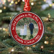 Fira en glatt första helgdag som gift par med ett foto av anpassningsbarna "Vår första jul som Mr. Och Mrs." runt metall ornament. All text på den här mallen är enkel att anpassa. (IMAGE & TEXT DESIGN TIPS: 1) Lägg till blanksteg i början eller slutet om du vill justera skrivläget. 2) Om du vill centrera fotot exakt så som du vill kan du placera det i kvadratisk form innan du laddar upp det till Zazzles webbplats.) Utformningen har en snyggt modern minimalistisk marin röd och vit gräns, handskriven kalligrafi av stil i namn och år och en bild till ditt val. Denna unika bröllop-keepsaké tillför en elegant till de nya Julafton-dekorationerna. Exempelbilden är av Tim Stagge (Källa: @tim_stagge on Unsplash).