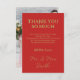 De här röda tackkorten innehåller ett foto av det gifta paret parat med skript elegant guld och fet stil. Om du vill redigera texten och ändra fotot klickar du på knappen Anpassa.