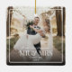 Celebrate your first holiday season as newlyweds with this elegant Mr. and Mrs. First Christmas square photo ornament. Designed with a clean white border and classic modern typography, this double sided ornament allows you to customize both sides with your favorite wedding or honeymoon photos. The front features the phrase First Christmas as Mr. and Mrs. with customizable text for your shared last name and the year, creating a meaningful keepsake that commemorates this special milestone. The back includes another fully customizable photo space, giving you room to showcase even more cherished memories.