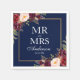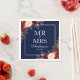 Mr. och fru Burgundy Blommigt Blue Guld Bröllop Pappersservett