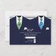 Herr och herr, Kostym och Tie Gay Bröllop / inbjudningar till OSA vid civila ceremonier ... navy kostym och liten schamprock-detalj till det tidsperspektiv som passar för medborgarceremonin/bröllop ... designer gay bröllopsinbjudningar kom komplett med vita kuvert.. gay-bröllopsinbjudningar från Ricaso ... detta är version 3 med en vit remsa i stället för en faded.