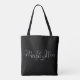 Med modern typografi av eleganten kan den här chicen svartvit toteväska vara personlig med ditt namn och speciella datum. Designad av Thisisnotme©