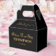 Gör dina bröllopsgavor extra speciella med dessa eleganta Mr. och Mrs. presentboxar med personlig prägel med ert nya efternamn och bröllopsdatum! Denna klassiska svarta och gyllene design tillför en touch av sofistikation, perfekt för alla formella bröllop.