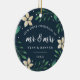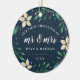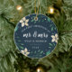 Fira din första jul som ett gift par med denna charmerande och festliga prydnad. Utformningen är "vår första jul som Mr. Och fru" och året med vita bokstäver, omgivna av elfenbensblommor och gröntens helgdag på en rik marin blå bakgrund. Lägg till ett foto på baksidan med motsvarande botaniska helgdag. Designad att samordna med vår Bright Boughs helgdag-samling.