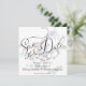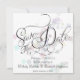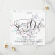 Pastellkvadraten konfronteras med "Spara datum" i finare-skriptcalligrafi - redot om du vill vara personlig med information om ditt bröllop-datum