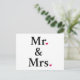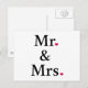 Mr. och Mrs. textdesign med två röda hjärtan för bröllopsgåvor, bröllop meddelande, förlovning, kort, klistermärken..