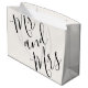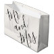 Denna vackra presentväska är perfekt för dina favoritmarrider, från nygifta till par som firar många årtionden i lycklig! Den brittiska engelska frasen "Mr and Mrs" är i elegant handskriven med stil modern kalligrafi, skevad diagonalt och överdimensionerad, i svart skrift på vit bakgrund. Utformningen är på båda sidor om påsen. Perfekt för bröllop, förlovningsfester och duschar, årsdagar eller tillfälle som firar sitt liv tillsammans.