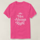 This cheeky bride’s shirt reads “Mrs. Always Right” in elegant script, with a tiny crown icon perched on the letters. The white text on soft pink keeps it sweet yet funny. It’s an adorable gag gift for the bride at bridal showers or bachelorette parties, playfully declaring who’s boss in the marriage!