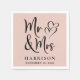 Modern rosa-servar för din bröllopsmottagning eller andra bröllop-evenemang med "Mr & Mrs" skrivet i en stor elegant och en illustration av två hjärtan gått med ihop. Lägg till ditt namn och bröllop-datum.