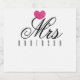 Anpassningsbar Mrs. design med modernt skript för snyggt och rosa hjärtklaffaccent kan vara personlig med bridens efternamn. Det här är underbart för en bachelorette-fest. Det är också en underbar bröllop-gåva till smekmånaden!