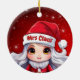Mrs Santa Claus! Celebrate the holiday season with this festive round ceramic red ornament featuring an endearing cartoon graphic wearing a cute Santa hat. Perfect for decorating your tree or as a thoughtful gift, this whimsical decor makes a cherished keepsake for years to come. Customize by changing the text, the font, the font color, or remove the text. You can even transfer this design onto other products. Enjoy this design your way! đŸ€¶đŸŽ„ Dimensions: Diameter: 2.87". Thickness: 0.156". Weight: 1.4 oz. Made of white porcelain. Full-color, full-bleed printing. Printing on both sides. Thread does not come attached/tied.