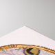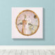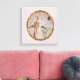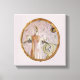 En digitalmålning av en Smew i en rosa blixtklänning med snöre halsband. Det finns en stol med vit klänning och hatt som vilar på den. En antika silhuett porträtt i ett anka-huvud i en mörk brun, rund, bild ram, hänger på väggen. Muren är rosa tapet med tropiska fåglar. Teckningen placeras inuti en dekorativ, runda, karvad ram som har några blommor på den. Copyright ©2017 Kimberly J Tilley.