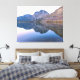 Ett foto från ett serenlandskap fångar upp ett stillastående bergsområde sjö med en perfekt som återspeglar omgivningen. Vatten är en lugn blå som speglar de tåliga, grått-tonade berg som är stiga upp i bakgrunden. Bergarnas sluttningar adorberas med en blandning av grönt träd och fläckar av pulserande höstlöv, vilket gör att en beröring av färg läggs till på scenen.