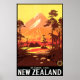 Vintage resor poster reproduktion av Mt Egmont Nya Zeeland. Bergslandskap med träd i förgrund på ett stil. Återställd reproduktion och underbar väggkonst.