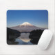 Majestätisk Mt Fuji reflekterad i sjön Tanuki och som inramas av flodstränderna på nightfallen.