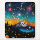 En häpnadsväckande målning av berget Rainier i Washington med en snabb, skarp kväll, himlar och eldflugor. Originalfärgning av digitalt material.