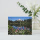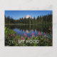 Ett fantastiskt foto av Mt Huva som reflekteras i Spegel Sjö med rosa vilda blommor i förgrunden.