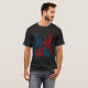 Muay Thai Flies Fighters T-shirt visar en slående design med två muay Thai-kombattanter som är riktade mot varandra, en i pulverblått och den andra i passionerat rött. De fångas mitt i aktionen och visar imponerande flygande knä eller hoppande knä-teknik. Under dem är ord "Muay Thai" elegant arrangerat i en triangelform, präglat av kompletterande röda och blå nyanser, som symboliserar styrka och enighet.