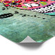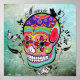 Muerte Day of the dead Calaveras Poster. Fira kärlek för Day of the dead med den underbara, färgstarka poster som är designad av artist Julie Farrell. Den har en färdigt dekorerad Muerte Skull som ofta kallas Calaveras, blomning & löv, blommor och fjärilar. Bakgrunden är ett blått/grönt nedtryckt utseende med ett tips om att skriva på det! Helt unikt och en måste ha för alla väggdekanter!