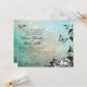 Muerte Day of the Dead Calaveras Bröllopsinbjudningar. Har en färgglad dekorerad Muerte Skalle ofta kallad Calaveras, utsmyckningar & blad, blommor och fjärilar. Bakgrunden är en blå/grön distressed look med en antydan till skrivning på den! Verkligen unik och måste ha för alla väggdekorationer!